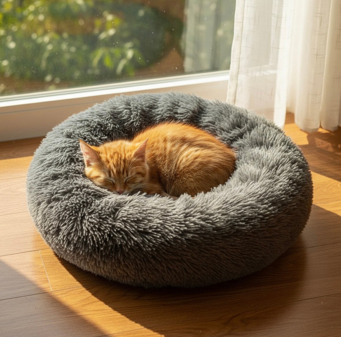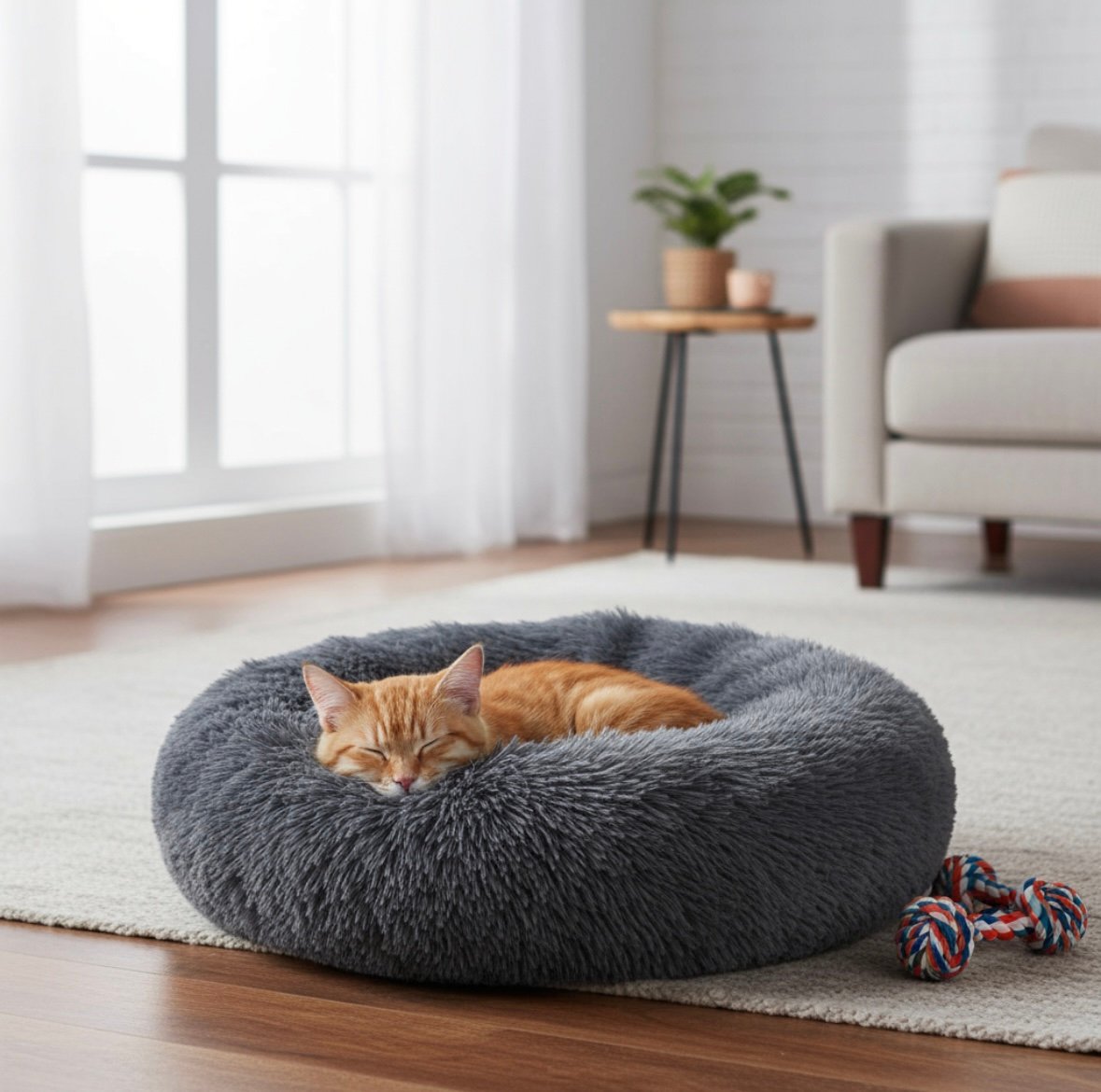 La cama para gatos de felpa de 50 cm es el refugio ideal para tu mascota, su forma circular proporciona un espacio acogedor y seguro donde tu gato podrá descansar y relajarse. El material de felpa es suave al tacto, garantizando comodidad y calidez en cada siesta.