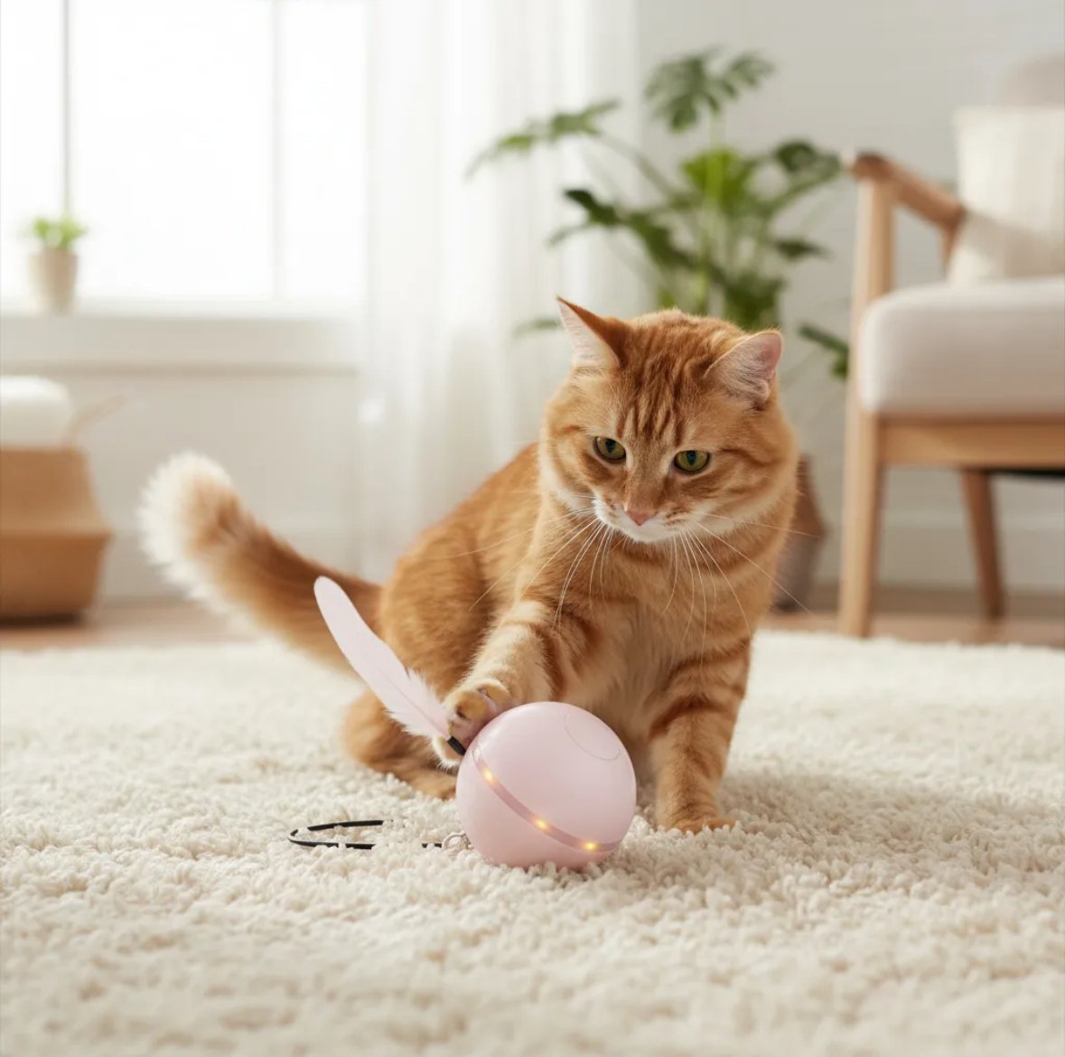 La bola móvil de Pupet es un juguete diseñado para estimular la curiosidad y la actividad física de los más cachorros. Con su diseño colorido y atractivo, este producto capta la atención de tu gato, invitándolos a jugar y explorar. Su movimiento dinámico, con luces y dos cabezales opcionales uno de pluma y otro de cascabel fomenta el juego interactivo, manteniéndolos entretenidos durante horas.